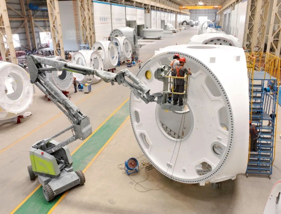 抬眼目测,每个轮毂都有一层楼那么高,工人踩着梯子站在半空,往周边一圈像表盘刻度一样的轴承上喷防腐材料。“这批是越南风电项目的订单,5个台套的整机,预计本月完成,5月初就能发运出口。”叶光伦介绍,基地的整机出口业务正在稳步推进,“我是学商务英语的,去年底加入这个团队,今年接待了好几拨外商,接下来还有来自印度尼西亚、沙特等地的客户。”