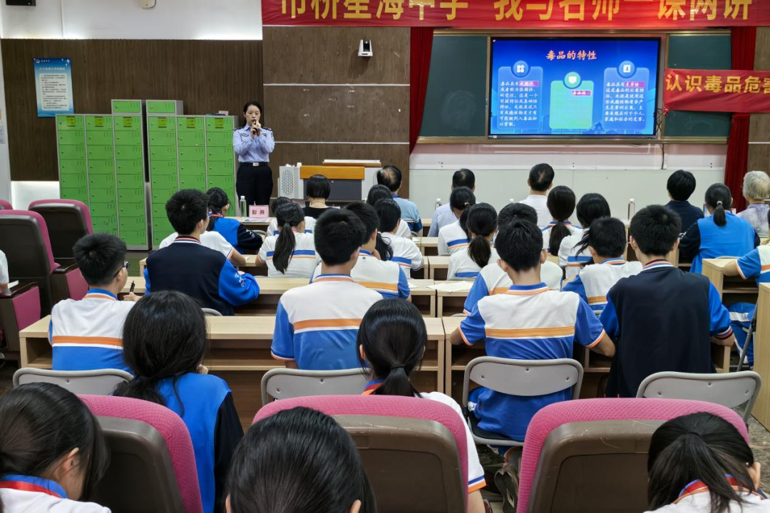 为进一步提升青少年毒品预防教育实效,防范涉麻精药品滥用蔓延,4月21日,广州市公安局番禺分局禁毒大队联合市桥街平安办、番禺区关工委等单位,在星海中学开展“防范青少年药物滥用”禁毒宣传讲座。